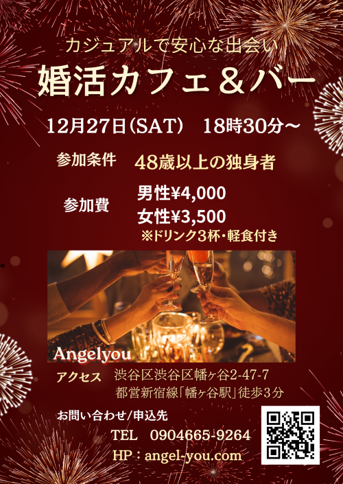 | 2015年9月26日19時~ | エンジェル・ユウ婚活パーティー 会場:幡ヶ谷珈琲カンタータ 人数:5人×5人 |